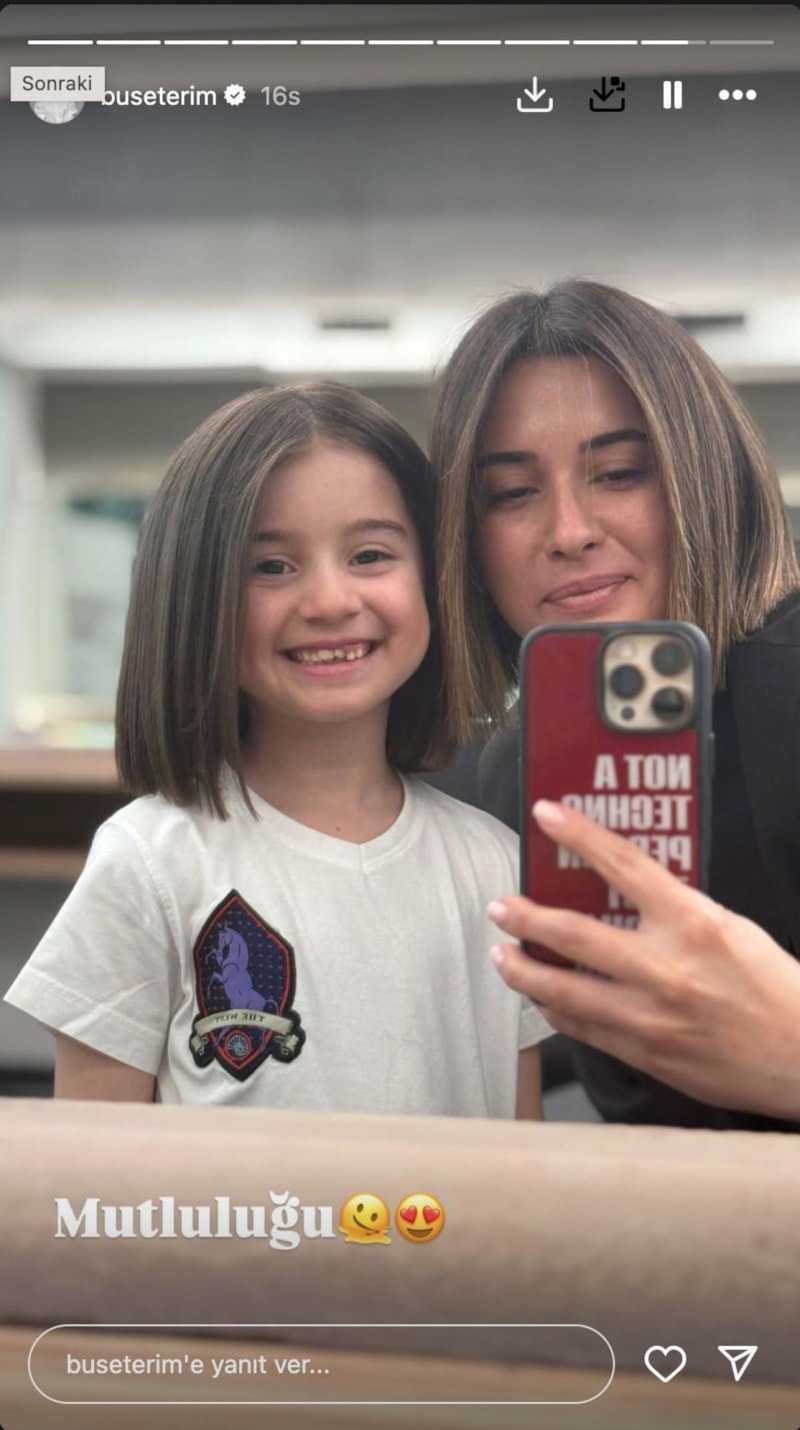 Terim, o anların videosunu şu notla paylaştı: "Naz’ın küçük Buse’ye dönüşmesini izleyelim, buyurun. Aylardır benden tek isteği saçlarını benim gibi kestirmekti, doğum gününde söz vermiştim, bugün sözümü tuttum."