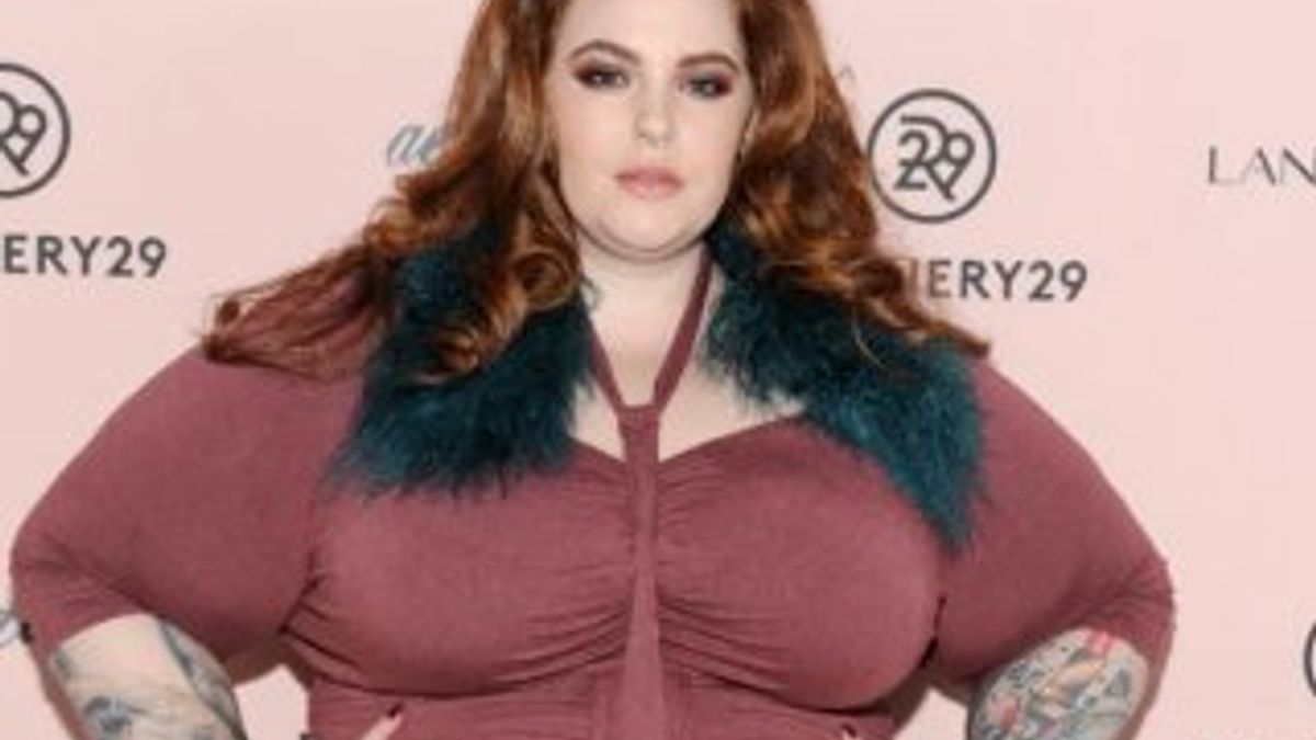 Giydiği yeşil mayoyla poz veren 136 kiloluk Holliday'in fotoğrafının hemen yanında "Bir süper model kükredi: Tess Holliday ondan nefret edenlerin k.çını öpmesini istiyor." ifadeleri yazıldı.