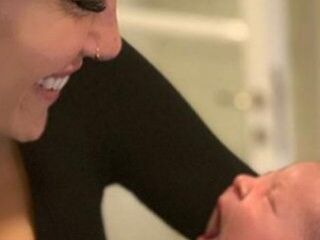Genç çiftin yakın arkadaşı Çağla Şıkel de evlerinde ziyarete gitti. Çağla Şıkel, ziyareti boyunca bebeği kucağından indirmedi.