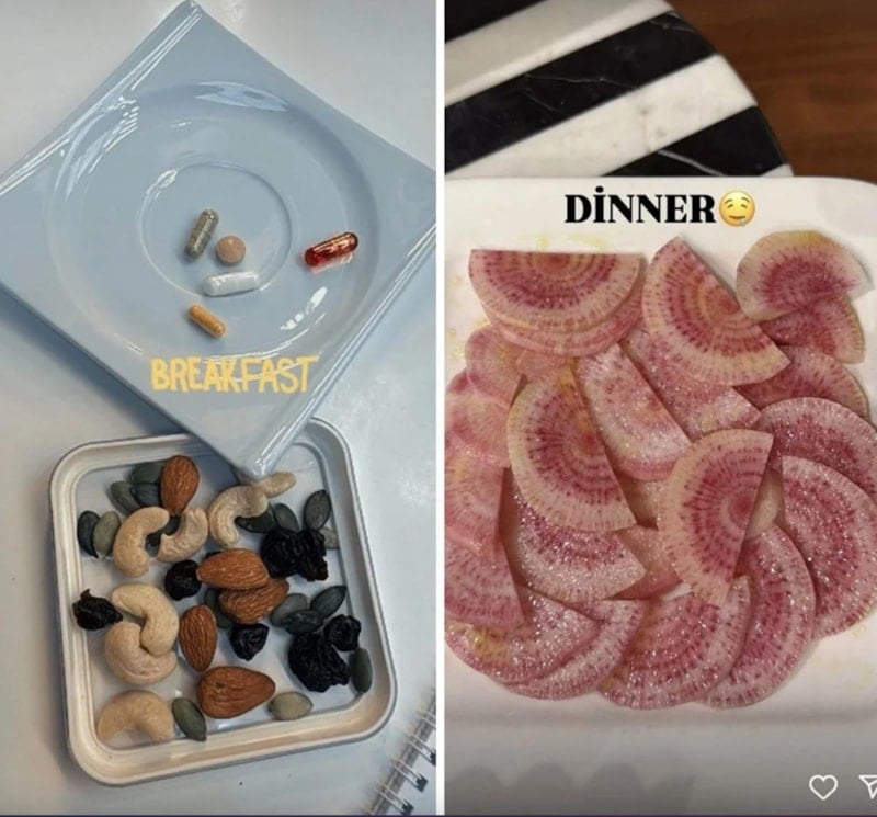 Daha önceki yayınladığı karelerle de yorum yağmuruna tutulan ünlü isim, kahvaltıda yediği kuruyemişler ve akşam yemeğinde yediği turp ile adından söz ettirmişti.