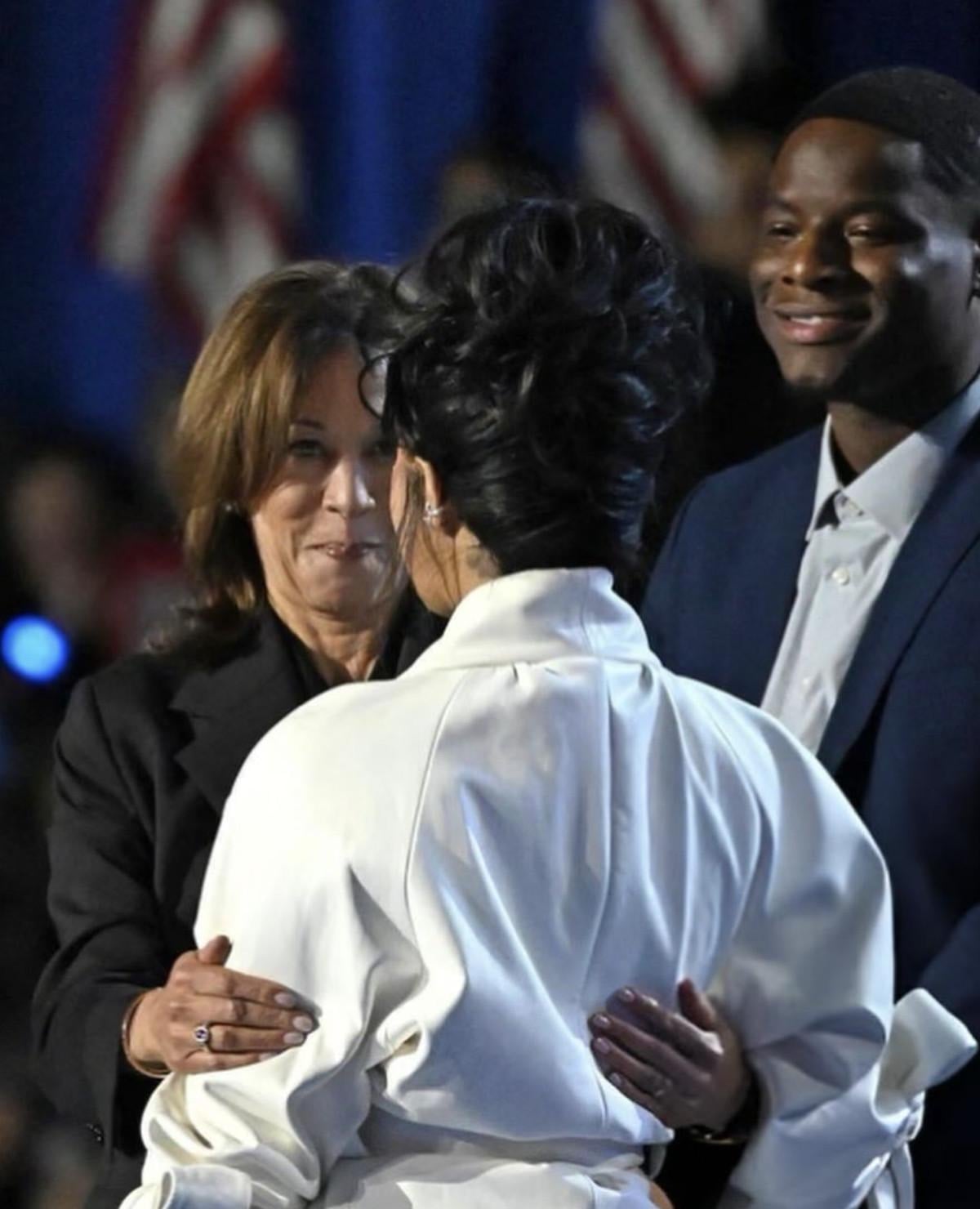 32 yaşındaki rapçi, konuşması sırasında kadınlardan yana olduğu için Kamala Harris'ten övgü dolu sözlerle bahsetti.