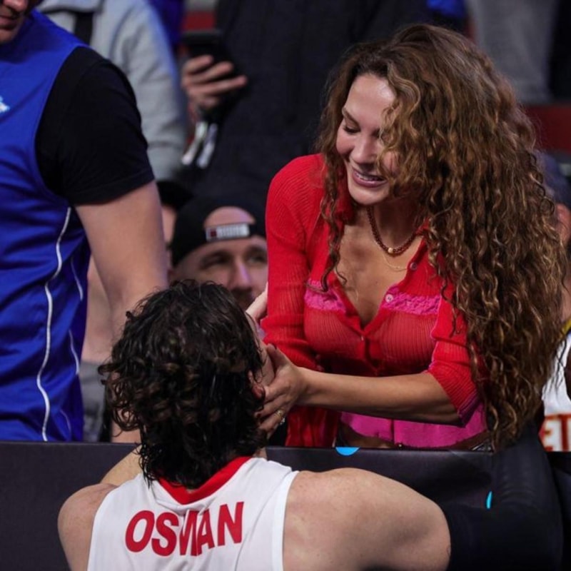 Milli Takım'ın kaptanı Cedi Osman da maç sonrası galibiyet mutluluğunu eşi Ebru Şahin ile paylaştı.
