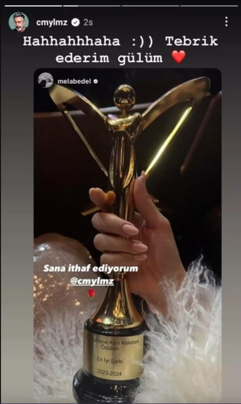 Paylaşımı sayfasına taşıyan Cem Yılmaz; "Tebrik ederim gülüm" yazıp, kalp emojisiyle Mela Bedel'e teşekkür etti.