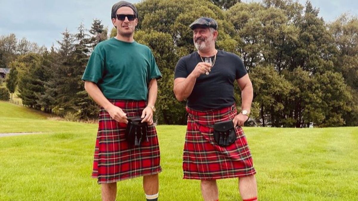 Doğal güzellikleriyle ünlü İskoçya'yı gezen Yılmaz ve Kaygılaroğlu, İskoç erkeklerinin milli giysisi olan kilt giymeyi de ihmal etmedi.