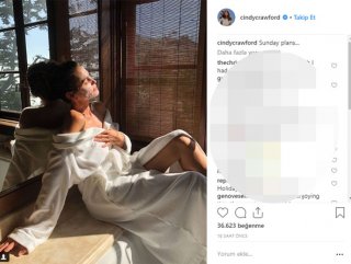 Evinin banyosunda çekilmiş bir karesini ‘Pazar planları’ notuyla paylaşan Cindy’nin yüzünde bakım maskesi ve üzerinde ise bir bornoz görülüyor.