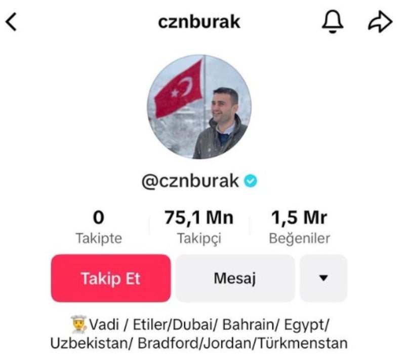 CZN Burak, gerçek adıyla Burak Özdemir, TikTok üzerinde 75 milyon takipçiyle dünyanın en fazla takipçiye sahip şefi olma unvanını kazandı.