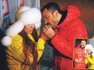 Karların üzerine kurulan mangalda sucukları pişiren Akalın, kocası Okan Kurt'u kendi elleriyle besledi.Demet Akalın mangal partisi verdi