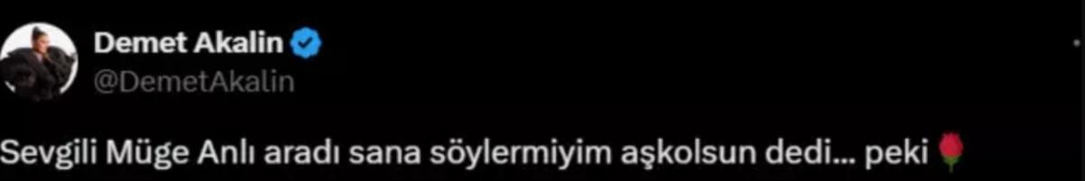 Daha sonra bir paylaşım daha yapan Akalın, X hesabından Müge Anlı'nın kendisini aradığını söyledi. Anlı'nın kendisine "Sana söyler miyim aşk olsun." dediğini yazdı.
