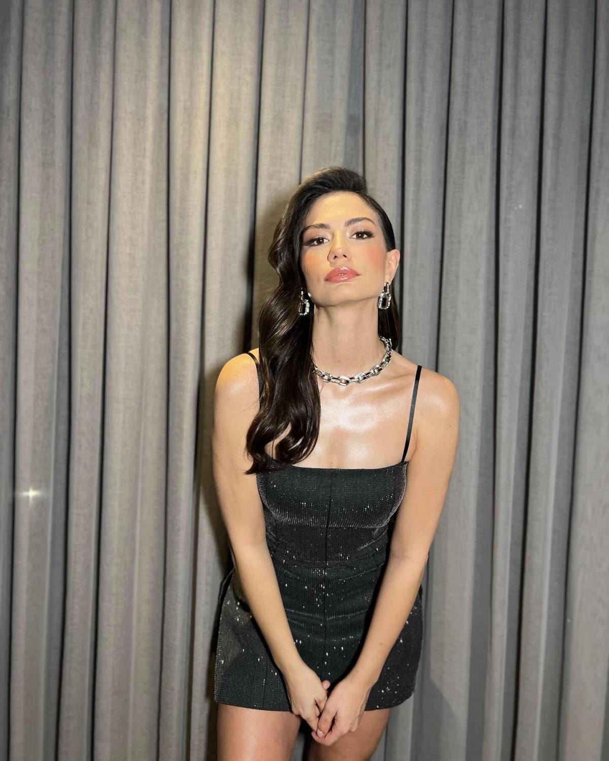 "Eşref Rüya" ile ekrana dönmeye hazırlanan Demet Özdemir, doğum günü için siyah süper mini elbise tercih etti.