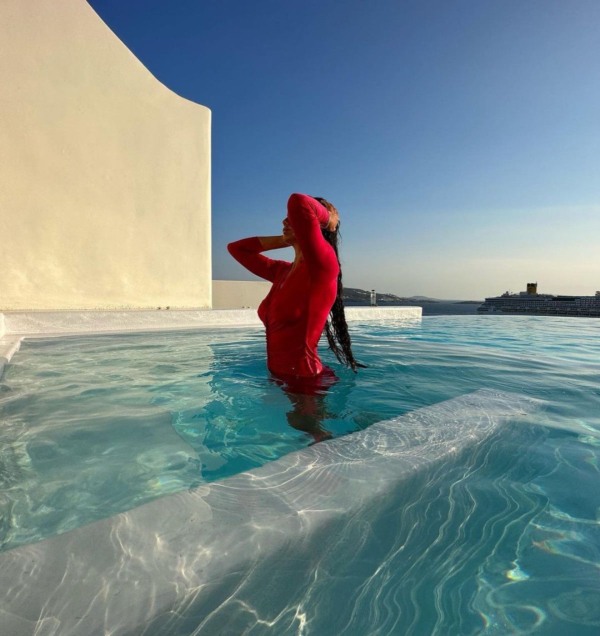Bikinili pozlarıyla nefes kesen Özdemir, bu defa da süper mini kıyafetiyle havuza girdi. Ünlü ismin iddialı pozlarına beğeni yağdı.