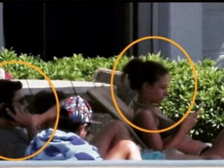 Yıldırım şezlongda güneşlenirken havuzda kulaç atan Özdemir, bir arkadaşlarının muhabirleri fark edip kendisini uyarması üzerine apar topar sudan çıktı.