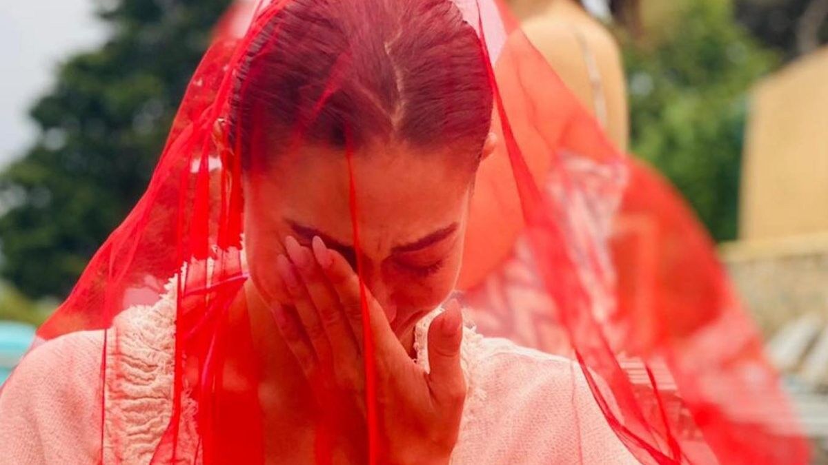 Demet Özdemir'in kına yakıldığı sırada kırmızı duvağının altında gözyaşlarını tutamadığı görüldü.