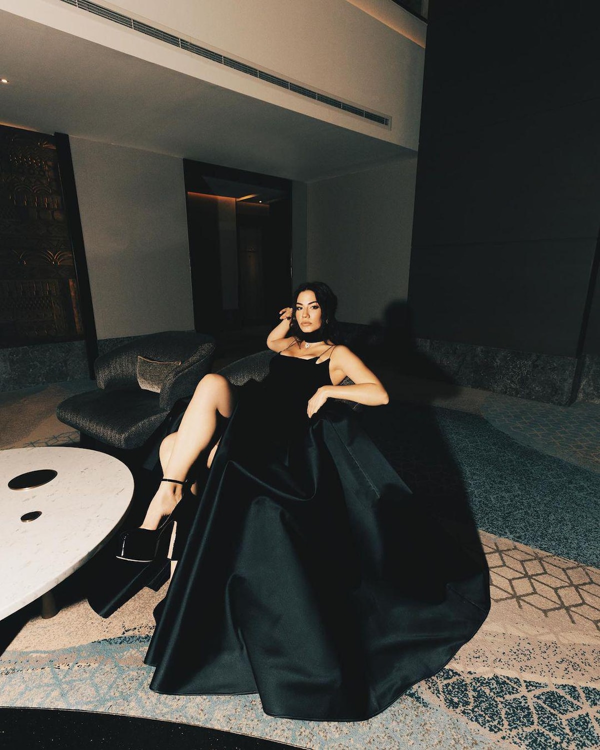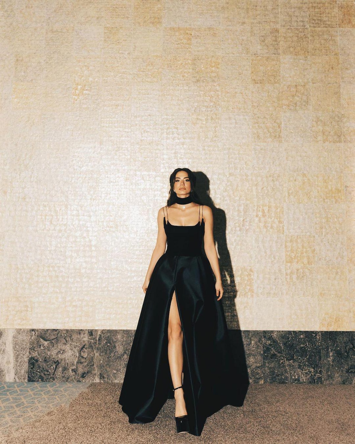 Göğüs dekolteli ve derin yırtmaçlı bir kombin tercih eden oyuncu, hayranlarından övgü dolu mesajlar aldı.