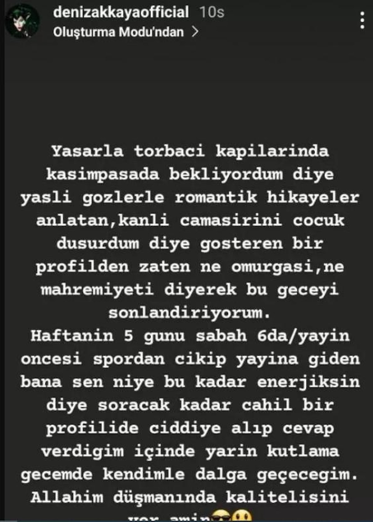 Bu olaylardan sonra eski partneri Deniz Akkaya da Serengil hakkında olay sözler söyledi. Akkaya'nın iddiasına göre; Serengil mide ameliyatı sonrası cinsel ilişkiye girdiğinde altına kaçırıyordu.
