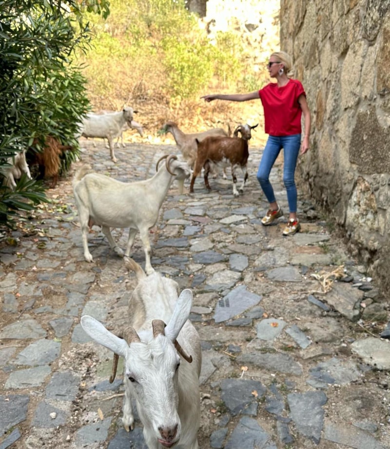Çanakkale'ye giden sosyetenin ünlü isimlerinden Derin Mermerci, keçilere ders verdiği videoyu Instagram hesabından yayınladı.