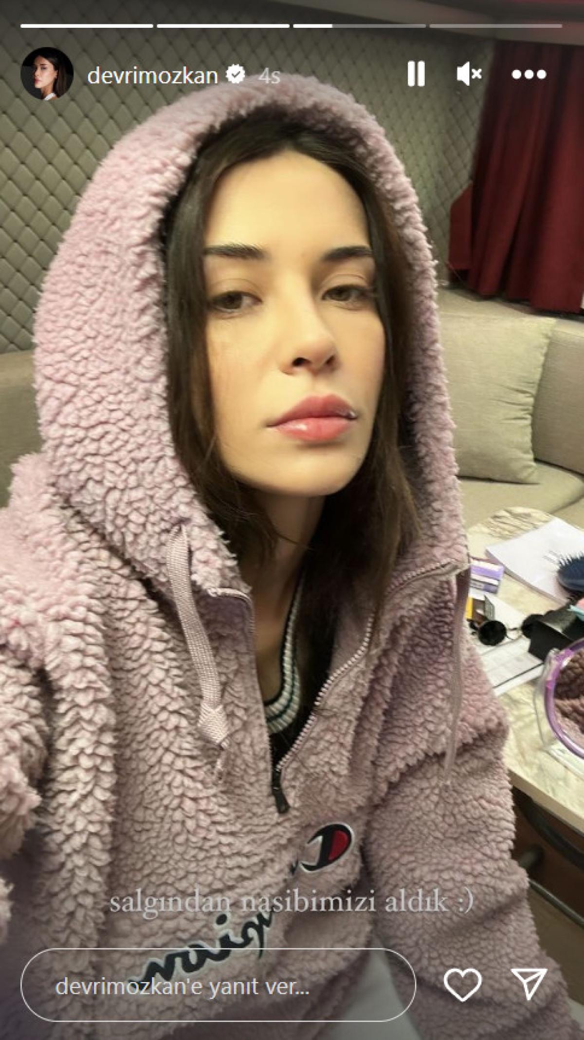 Ünlü oyuncu set karavanında çektiği fotoğrafını "Salgından nasibimizi aldık" notuyla paylaştı.