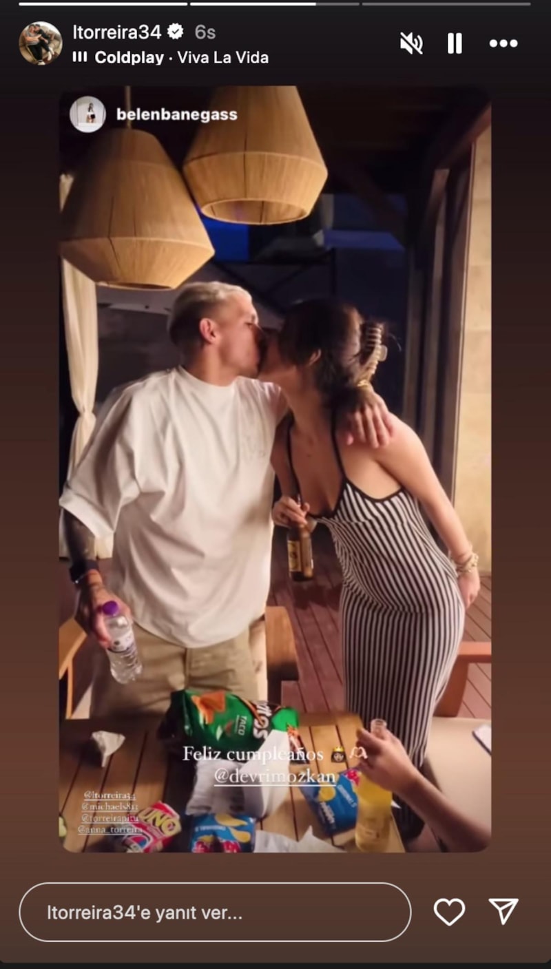 Her iki isim de sosyal medya hesabından birbirlerine sarıldıkları bir fotoğrafı paylaşırken Torreira, İspanyolcada 'hayatım' anlamına gelen 'Mi vida' notunu fotoğrafa düştü.