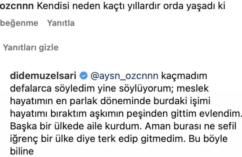 Yıllardır yurt dışında yaşamış çocuğunu da Amerika'da dünyaya getiren Uzel'e sosyal medyadan yorum yağıyor. Gelen eleştirilere tek tek cevap veren Uzel, aşkı için Türkiye'yi terk ettiğini, yoksa asla gitmeyeceğini söylüyor.
