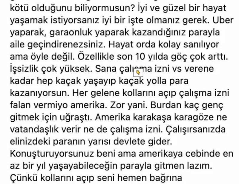 Uzel, "Son dönemde bazı isimler yurt dışına çıkmayı tavsiye ediyor. Siz yıllardır yurt dışında yaşadınız bu konuda ne diyorsunuz?" sorusuna, "Çok marifet zannediliyor dimi? Yurt dışı kolay değil. Türkiye'den kaçıyorsunuz ama kaçmayın. Gerçekten belli bir noktadan sonra dönüp dolaşacağınız yer burası...