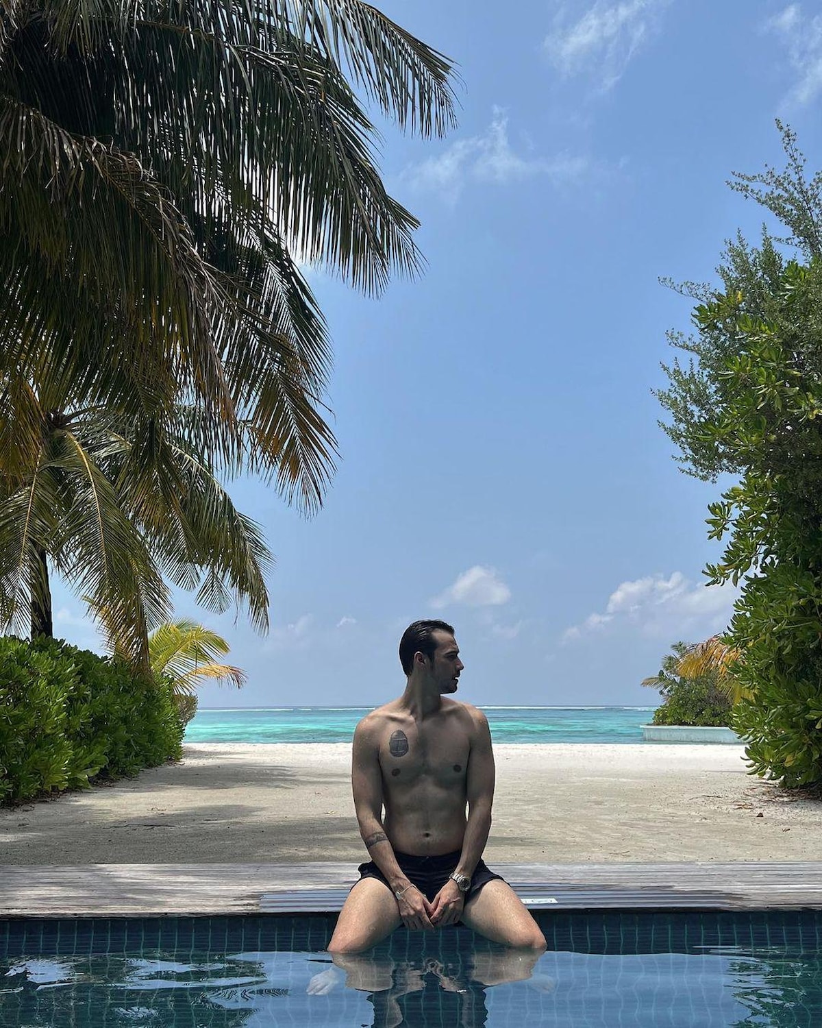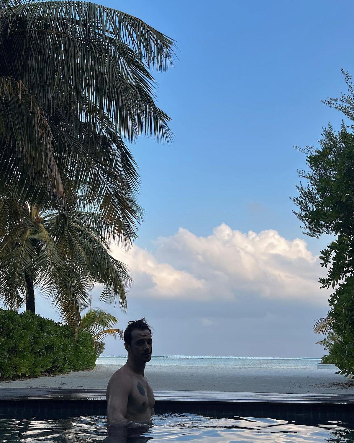 Sevgilisiyle ilk tatiline çıkan ve Maldivler'i tercih eden Dilan Çiçek Deniz dekolteli pozlarını paylaştı.