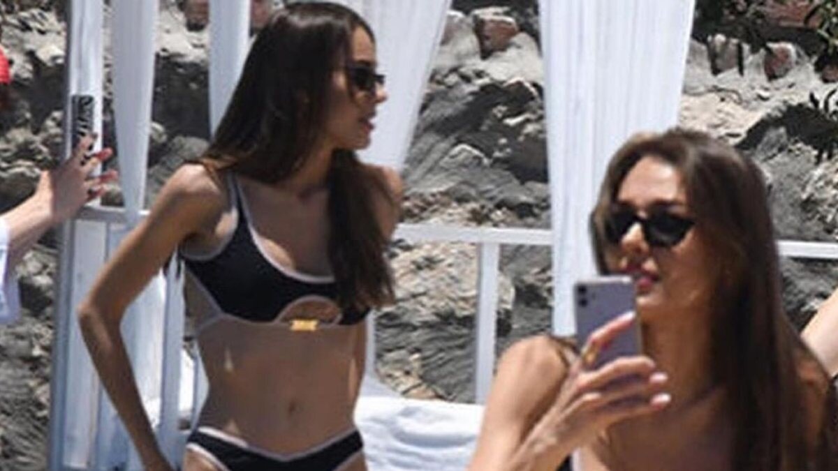 Siyah-beyaz bir bikini giyen Dilan Çicek Deniz'in fit hali dikkat çekti.