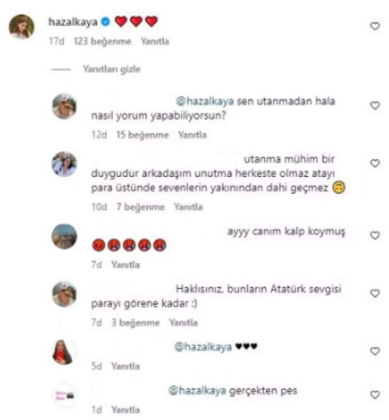 Sosyal medya kullanıcıları ise bu duruma sessiz kalmayarak, “Utanmadan hala nasıl yorum yapabiliyorsun?”, “Utanma mühim bir duygudur arkadaşım unutma herkeste olmaz. Ata’yı para üstünde sevenlerin yakınından dahi geçmez.”, “Bunların Atatürk sevgisi parayı görene kadar." şeklinde yorumlar geldi.