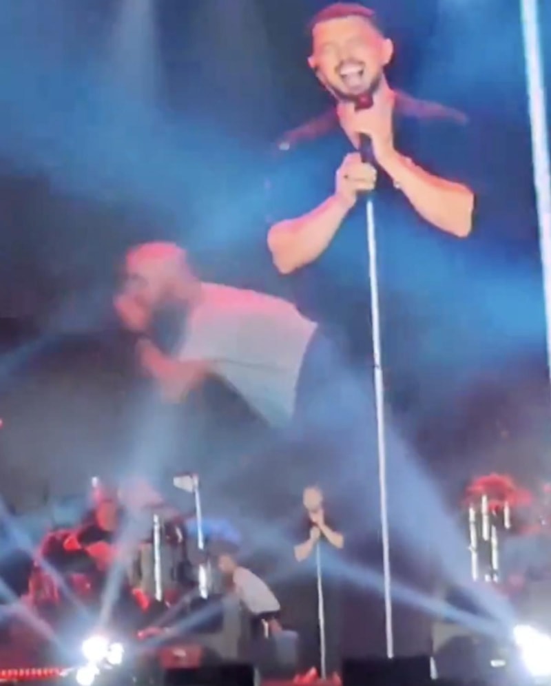 Ünlü şarkıcı, sahnede bir süre sendeledikten sonra kendini toparlamaya çalıştı.