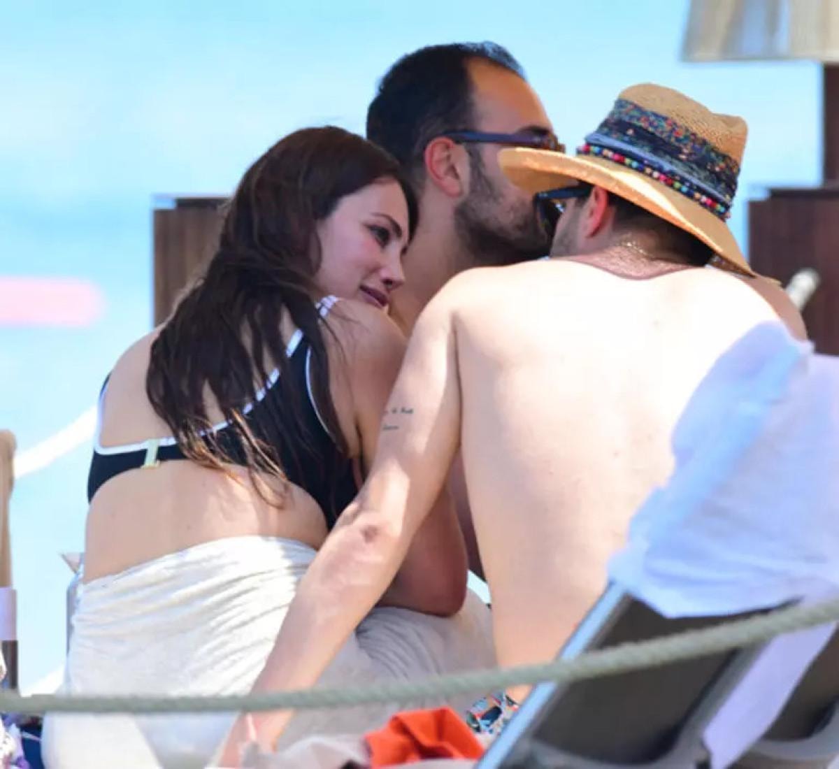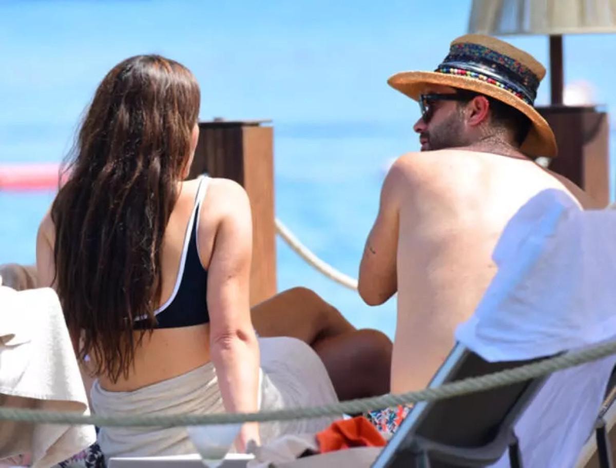 Ünlü ismin omuzuna başını yaslayan gizemli güzelin, Güngör’e anlamlı bakışları objektiflere böyle yansıdı. Çift, günü şezlongda sohbet ederek geçirdi.
