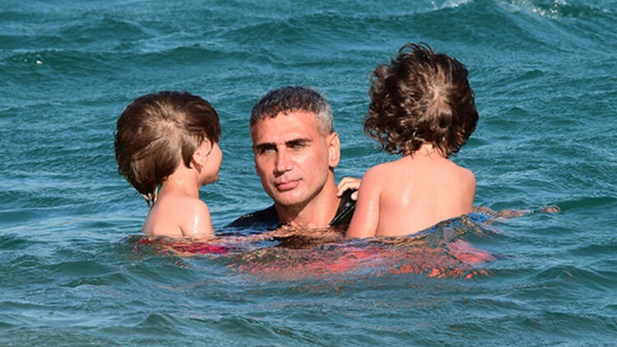 Tişörtüyla denize girmek zorunda kalan Doğuş, Arin ve Arda’yı yüzdürüp oyun oynattı.