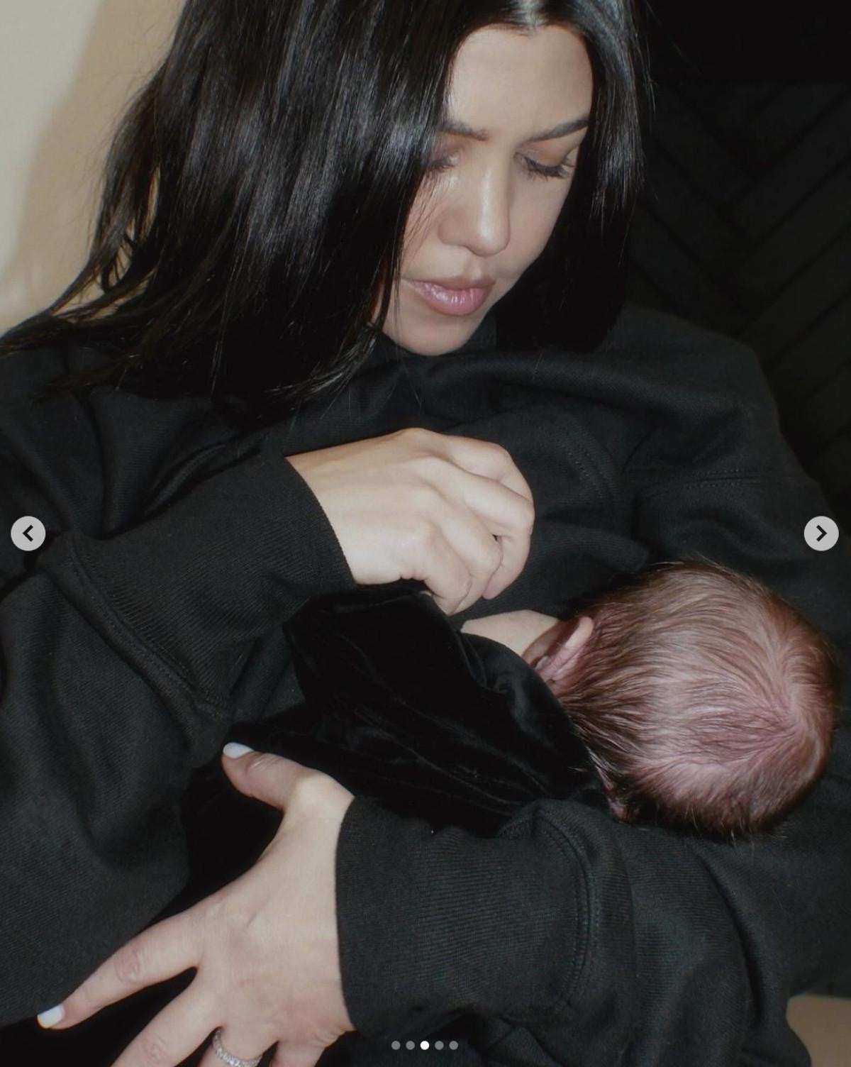 Paylaşılan fotoğraf arasında Kourtney Kardashian, bebeğini emzirdiği an da var.