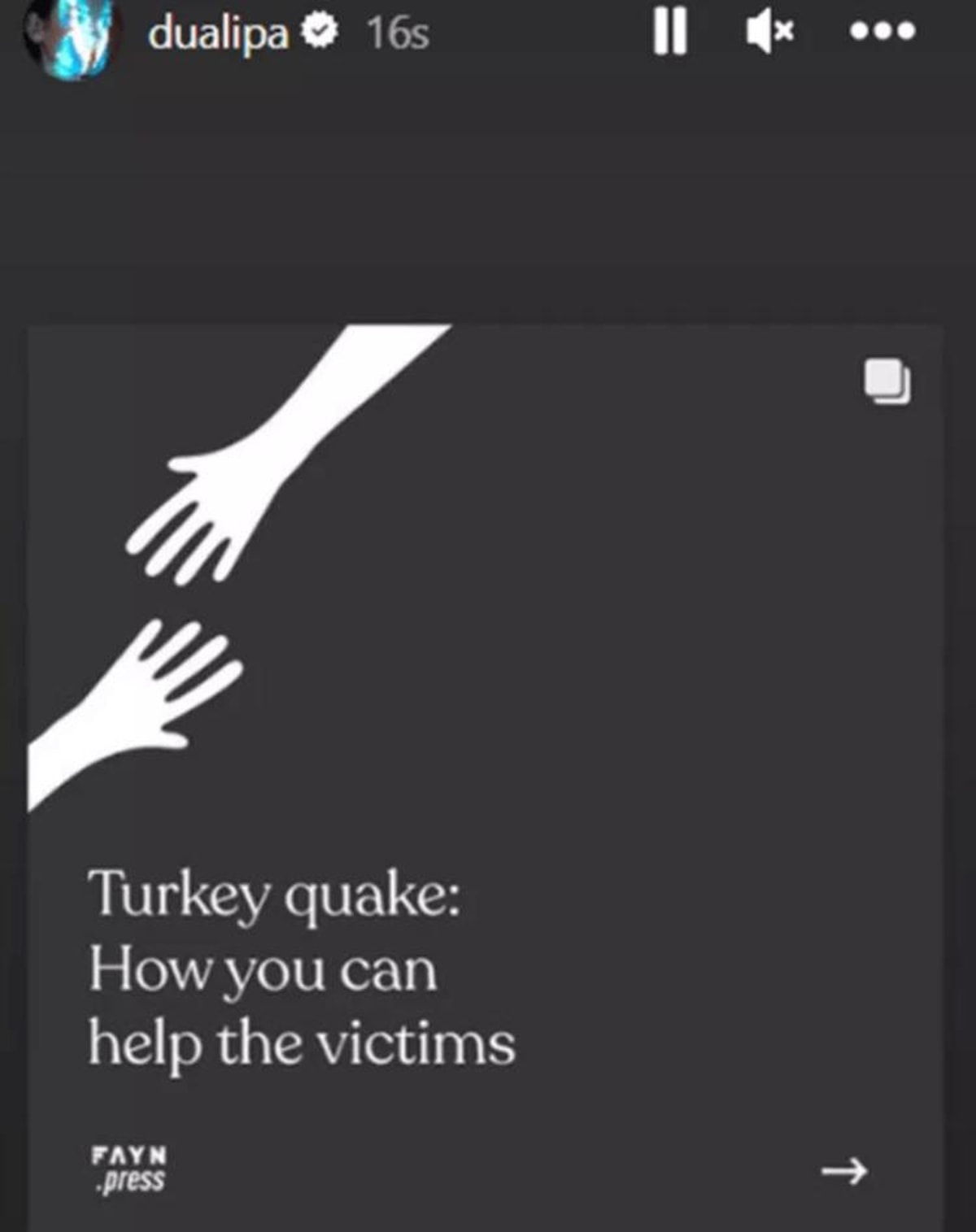 Arnavut asıllı şarkıcı Dua Lipa ise Instagram hesabından Kahramanmaraş’ta yaşanan depremin ardından Türkiye’ye yardım göndermek isteyen takipçileri için bir mesaj paylaştı.