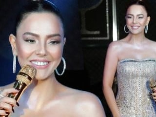 Ünlü şarkıcı Ebru Gündeş, altın mikrofonla şarkı söyledi.