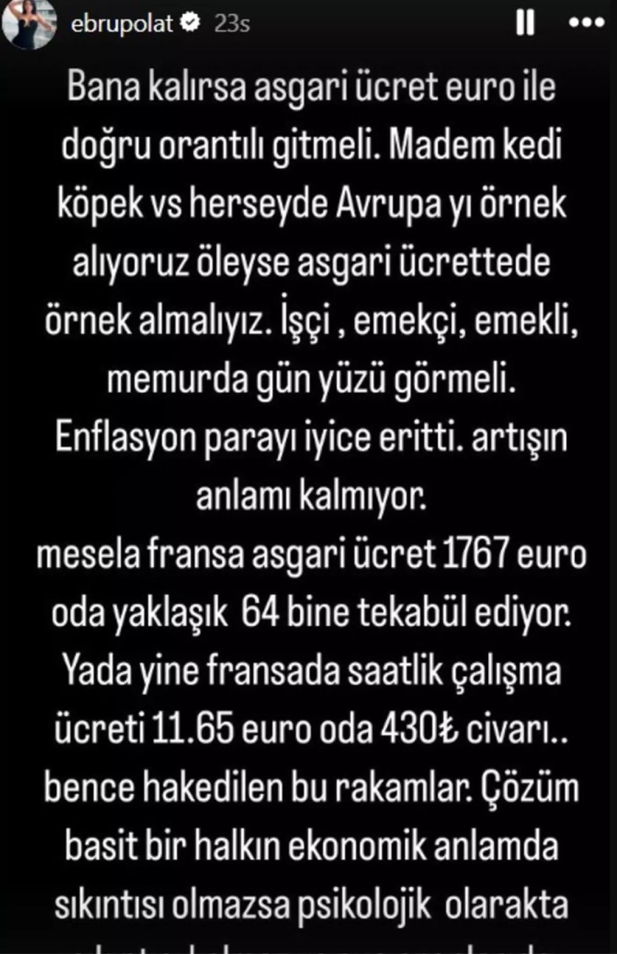 2025 asgari ücret rakamı için bir öneri de şarkıcı Ebru Polat'tan geldi.