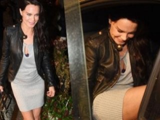 Yakın bir arkadaşının doğum gününe katılan Ebru Şallı, mekan çıkışı dekolteli kıyafetiyle dikkat çekti.