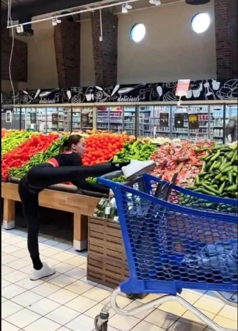 O anları kayıt altına alarak Instagram hesabından "Süper market pilatesi" notuyla paylaştı.
