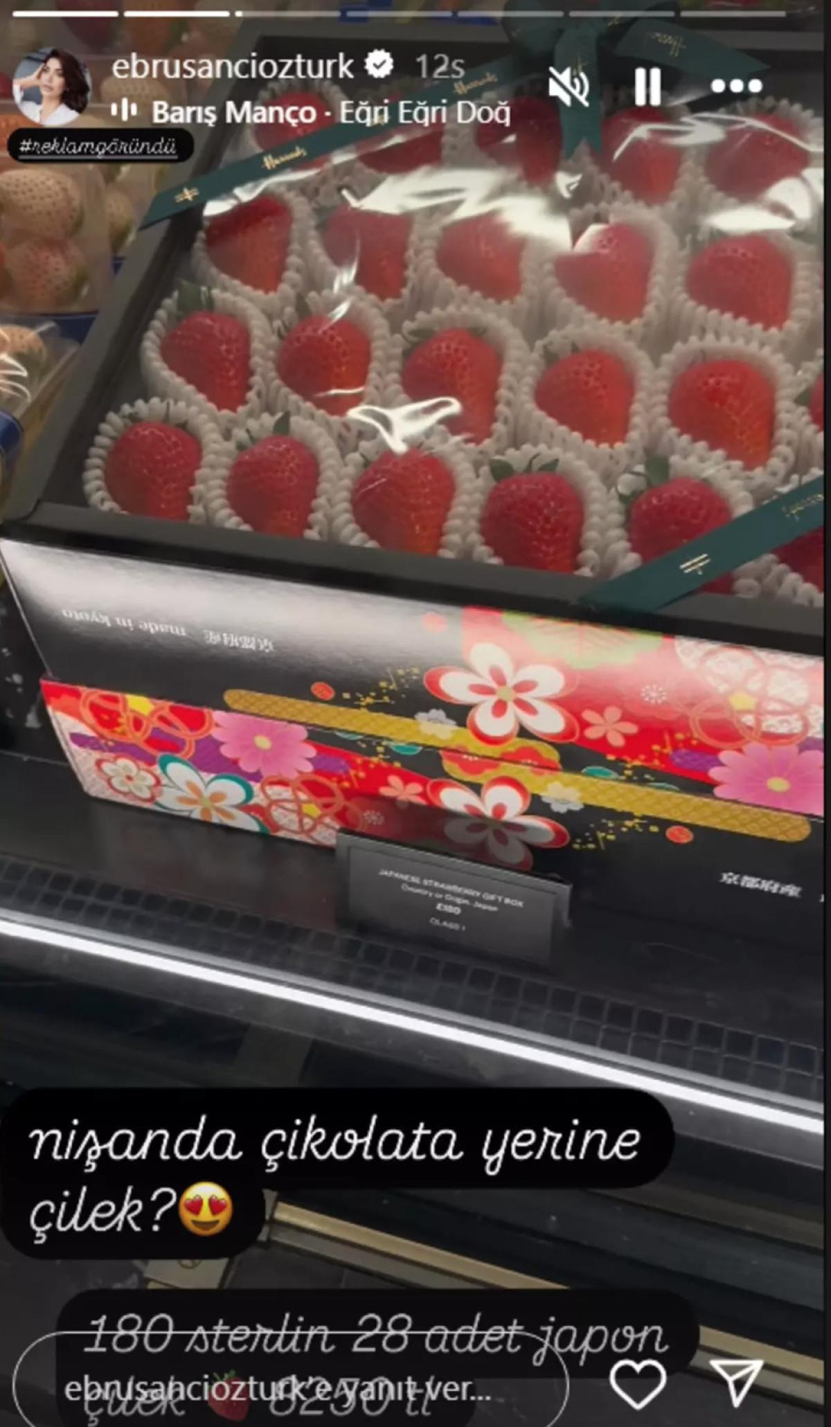 28 adet çileğin 180 sterlin yani 8 bin 250 TL ettiğini paylaşan Şancı sosyal medyada gündem oldu.