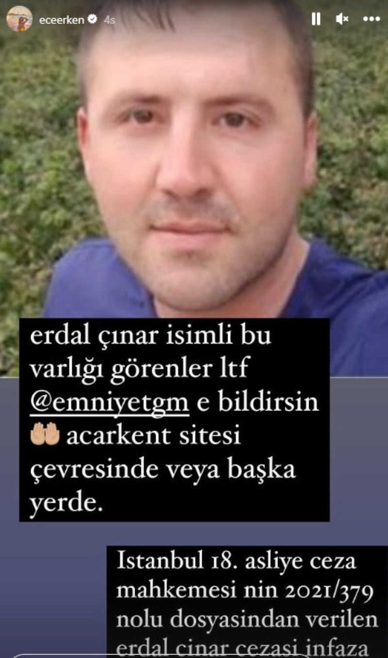 Daha önce yaptığı suç duyurusu sonucu akıl hastanesinde tedavi altına alınan Erdal Çınar, yeniden Ece Erken'i tehdit ediyor. Ece Erken, sosyal medya hesabından isyan etti..