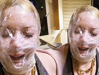 Güldüren paylaşımlarda bulunan Ece Seçkin, can sıkıntısından yüzünü streç filmle sardığı fotoğrafını Twitter hesabından paylaştı.
