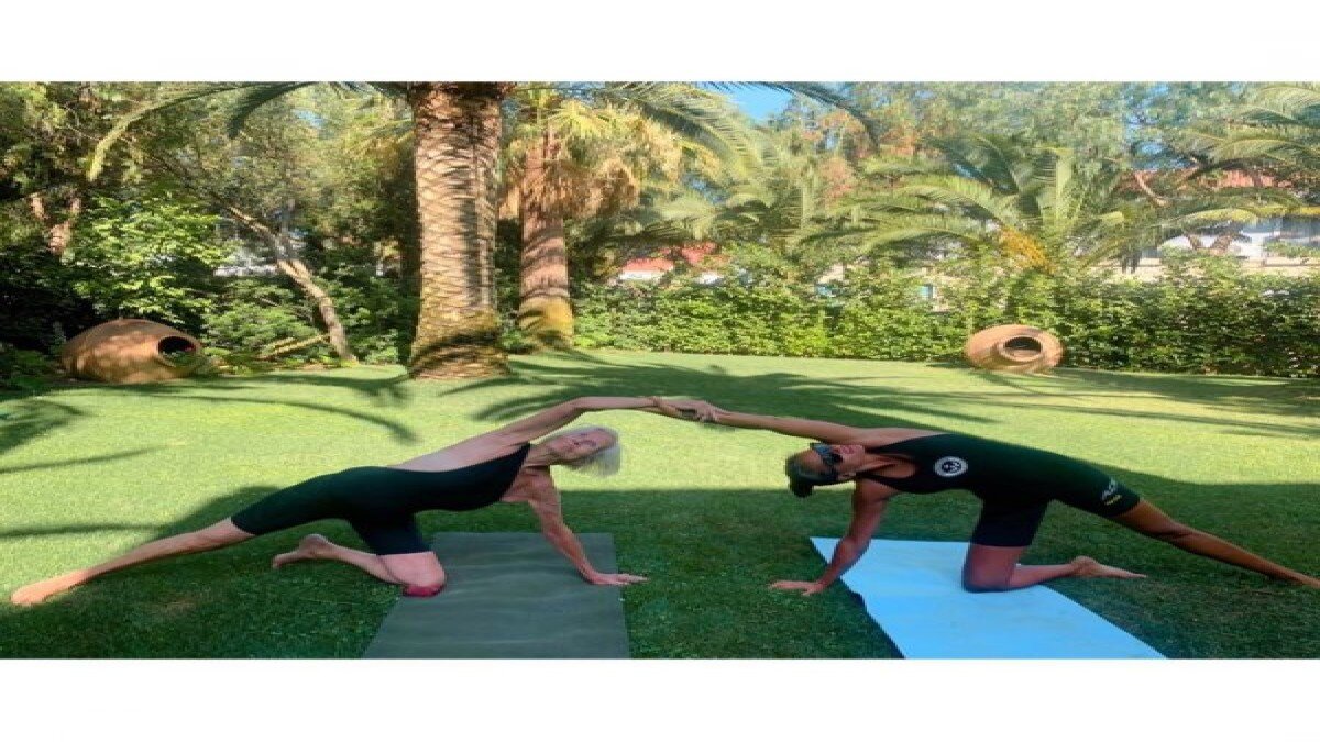 Taşpınar’a, yoga yaparken 90 yaşındaki anneannesi de eşlik etti. Anneannenin esnek halleri dikkatlerden kaçmadı.