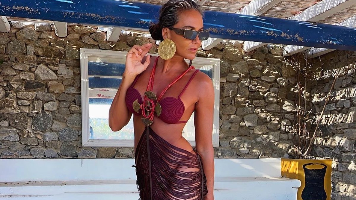 Tatil için Yunan adası Mikonos'u tercih eden sosyetik isim, bu defa kendisine küçük gelen bikinisiyle verdiği pozu sayfasından yayınladı.