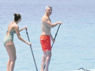 Suda kano üzerinde kürek çeken çiftin, deniz keyfi uzun süre devam etti. Çifte, daha sonra iş adamının babası Özbek Saran da katıldı.
