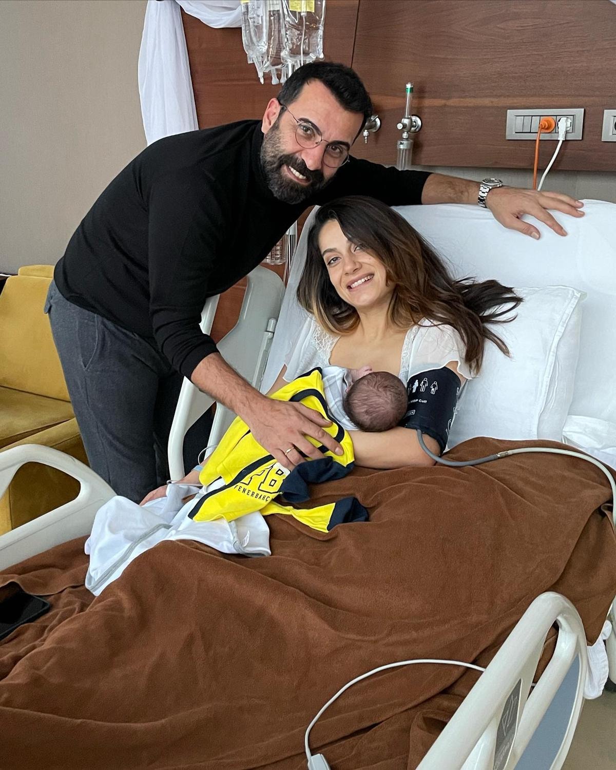 2022'de ise ilk kez anne ve baba olmanın heyecanını yaşayan çift, oğulları Can'ı kucağına aldı.