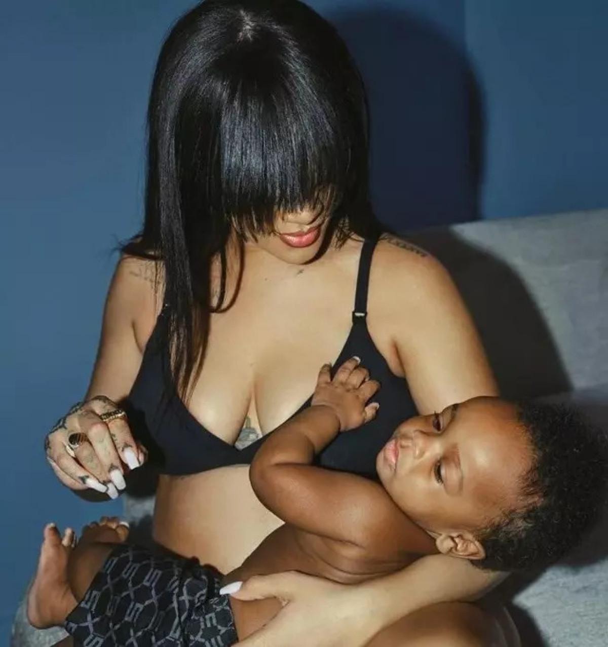 İç çamaşırı markası çıkaran ve emzirme sütyenini tanıtan Rihanna, oğluyla kamera karşısına geçti.