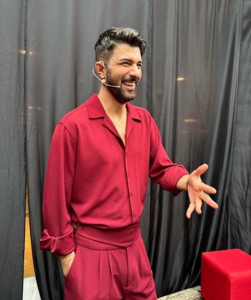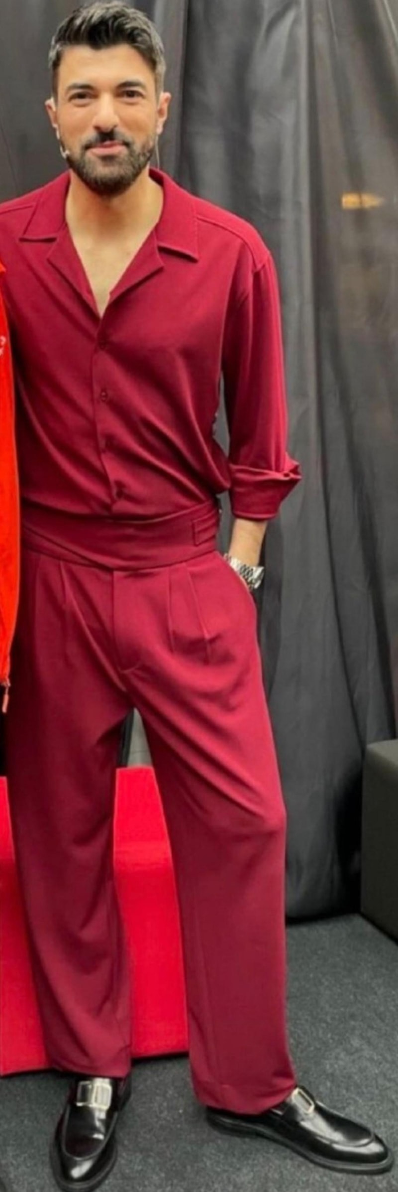 Önceki akşam gerçekleşen bir davete giden Engin Akyürek, kırmızı gömleği ve kırmızı şalvar tipi pantolonuyla tüm dikkatleri üzerine çekti.