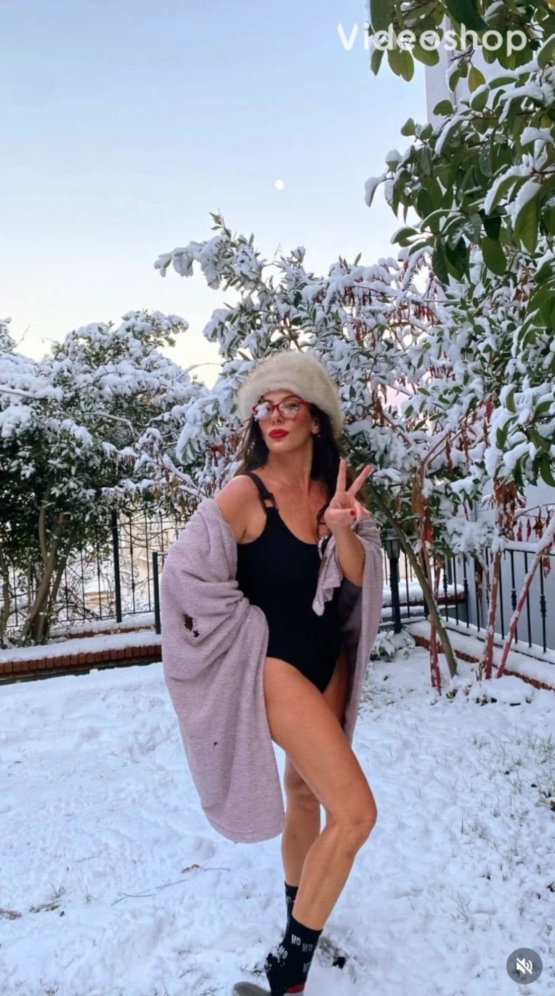 Siyah mayosunu giyip kar üzerinde adeta dans eden Zeynep Özyağcılar, "Kimseye verilecek hesabım yok çok şükür. Her 1 Ocak denizde olurum. Burası don yaptı, araba çıkmadı. Ben de kara girerim dedim..." ifadelerini kullandı.