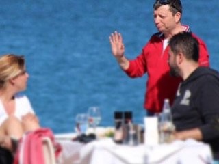 Muğla'nın Bodrum ilçesinde, Türkbükü'ndeki Atılay Balık adlı restoranda oturan Erhan Çelik ile eşi Gülben Ergen'in tatil keyfi, kendilerinden habersiz çekilen fotoğrafları nedeniyle yarım kaldı.