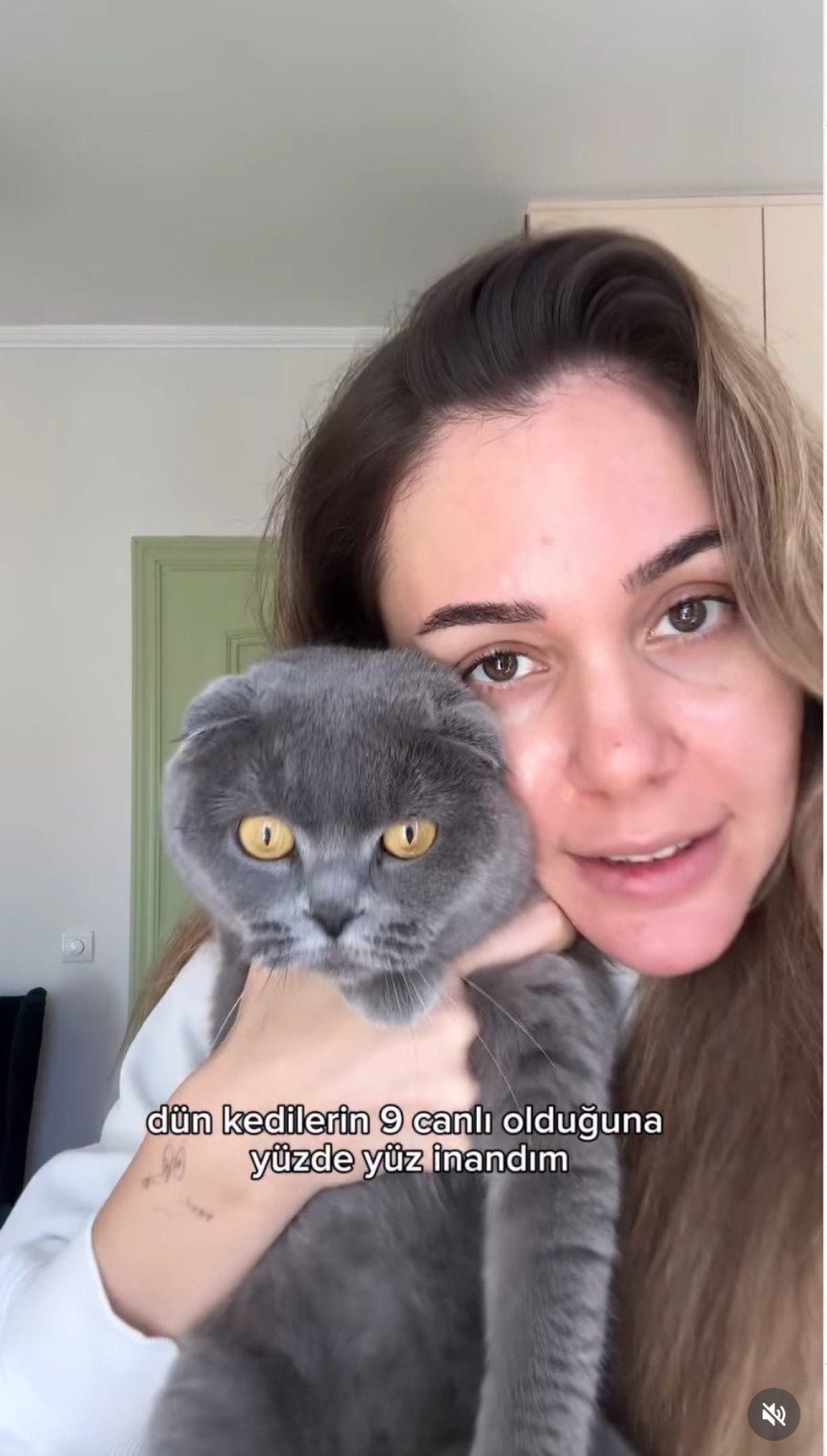 - Berfu Yenenler, paylaşımına "Kedimiz nasıl tost olmaktan kurtuldu" notunu ekledi.