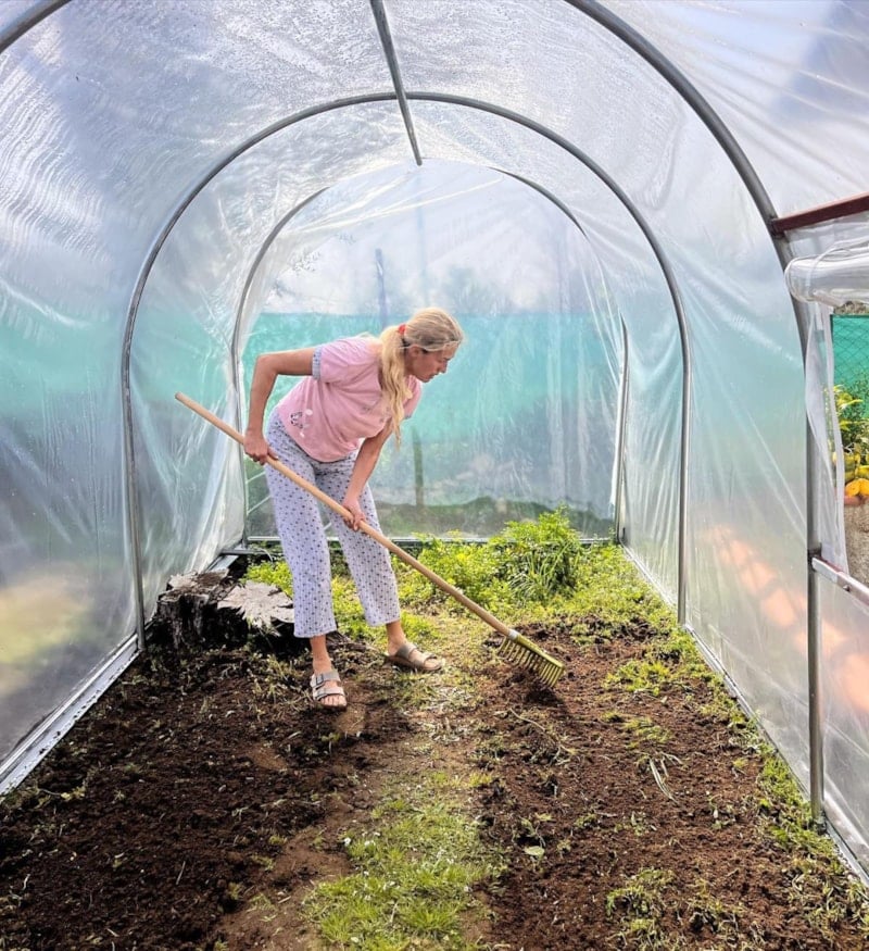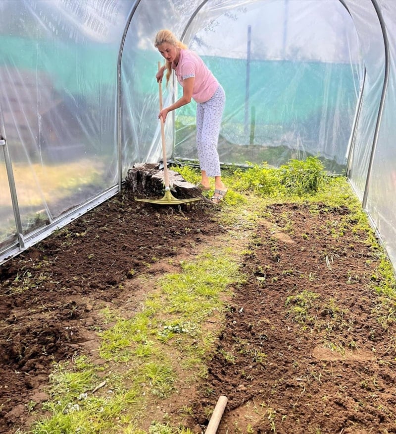 Özay, kendine küçük bir sera yaptırıp, önce tarım yapacağı alanı temizledi. Sonra da kazdı ve gübreledi. Ünlü manken eline tırmık alıp etrafı iyice topladı. O anlarını sosyal medyada paylaşan Özay, paylaşımına şu notu düştü: