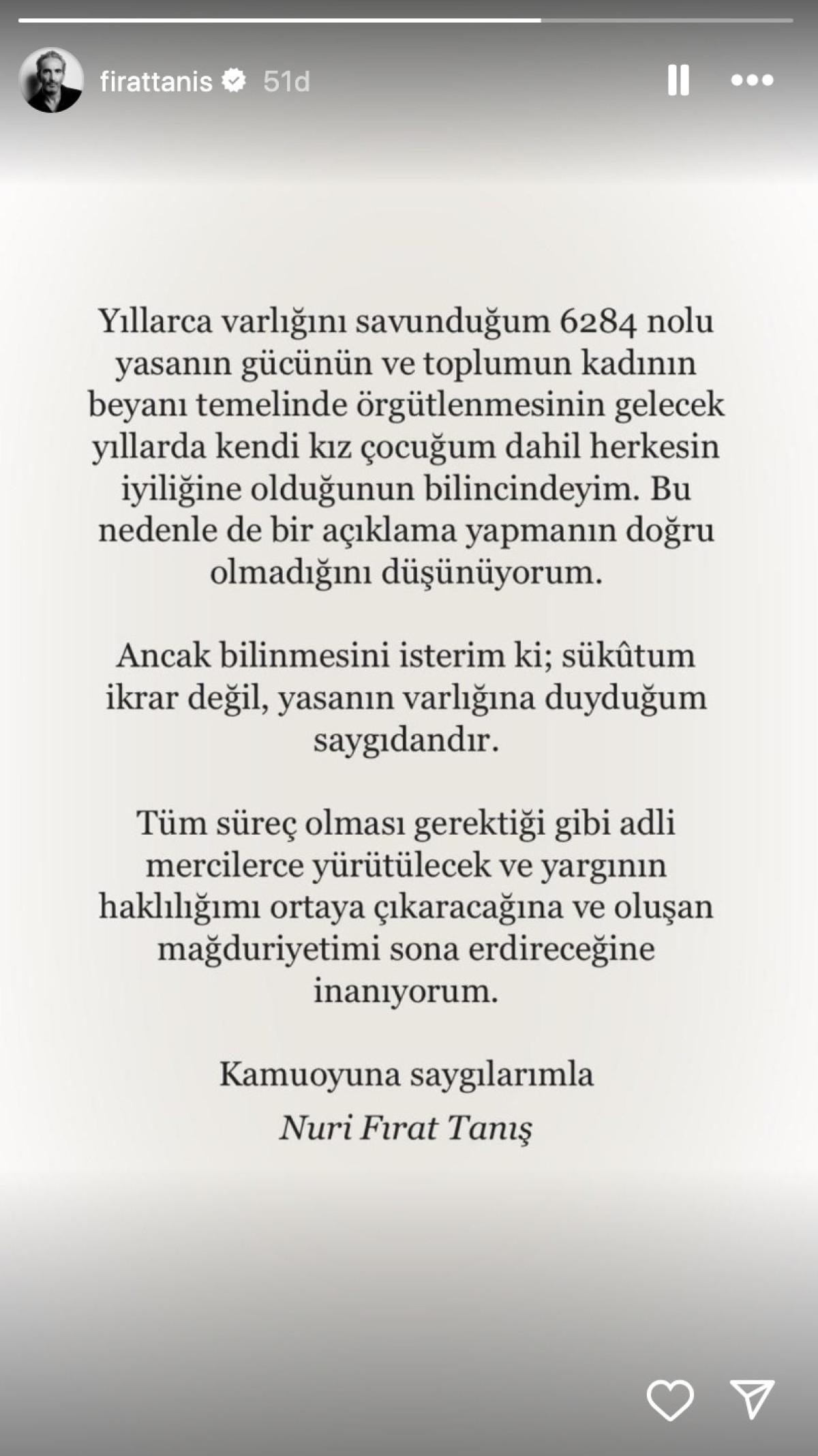 Yaşadıklarını sosyal medya hesabında takipçileri ile paylaşan Tamkan'ın iddiaları ardından açıklama yapmayan Fırat Tanış sessizliğini bozdu.