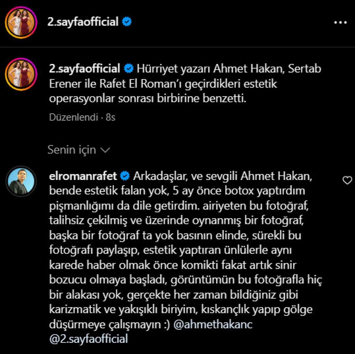 Rafet El Roman, hakkındaki estetik iddialarına yanıt vermiş, sadece botoks yaptırdığını söylemişti.